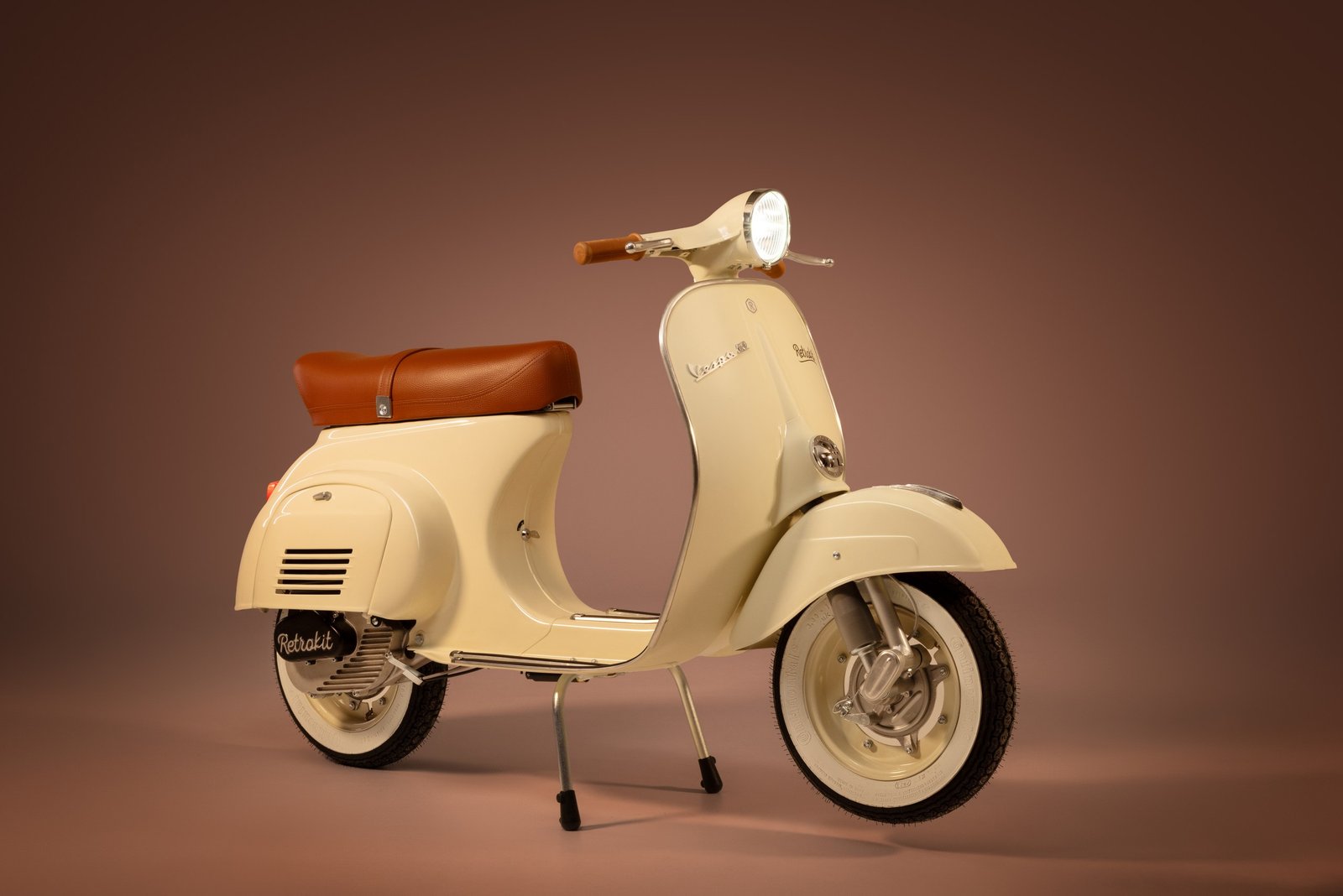 This Retrokit creation is born from the desire to bottle the softness of a childhood memory. The bodywork, as glossy and velvety as freshly whipped cream, reflects the sun with the same delicacy of slowly melting gelato. The burnished leather finishes recall the warmth of a crisp wafer, creating a chromatic contrast that breathes craftsmanship and Italian Sundays spent playing in the sand.