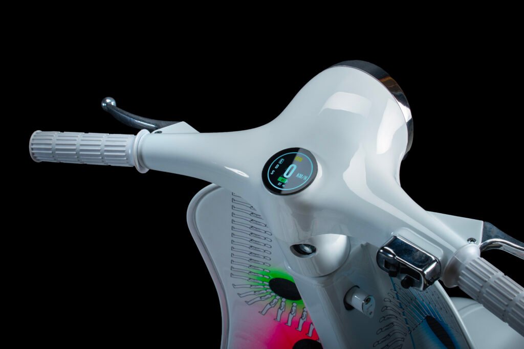 L’icona senza tempo della Dolce Vita si trasforma in una tela vibrante. Estate (2025) non è solo una Vespa 50 d’epoca: è un’opera unica che fonde passato e futuro, un viaggio concettuale tra arte e tecnologia.